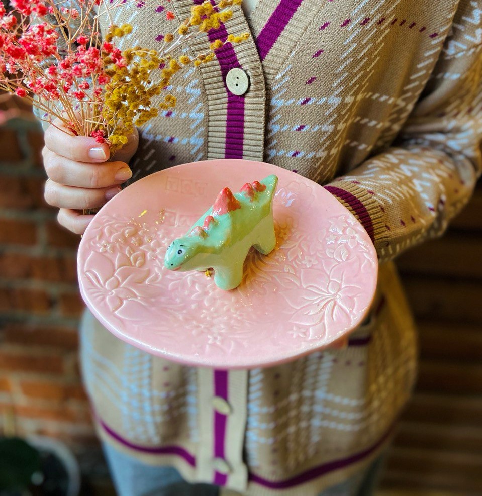 На мастер-классе мы вместе слепим дизайнерскую ТАРЕЛОЧКУ с оттиском 🦕 с помощью наших фигурных скалочек,, или тарелочку с росписью или тарелочку с посланием и т.п. 🐅 ⠀