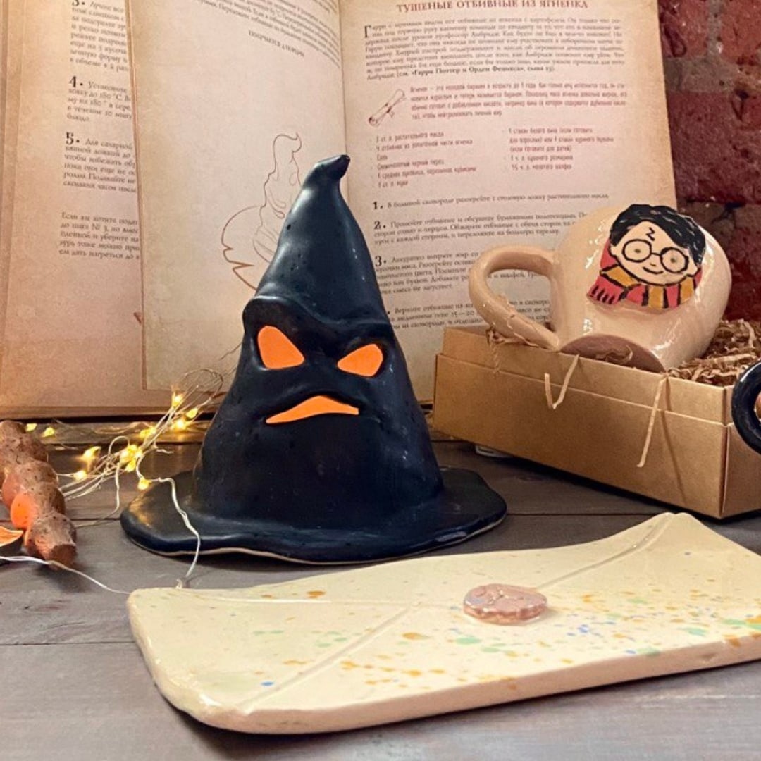 Слепите светильник в форме знаменитой Распределяющей шляпы. Он не только создаст уютное освещение, но и станет магическим арт-объектом в вашем интерьере. Выберите цвета факультета и добавьте собственные символы 🌀✨