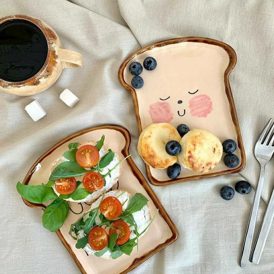 Слепим в технике пласта милый хлебушек и нарисуем ему глазки) Идеальная тарелочка для бутербродов готова!