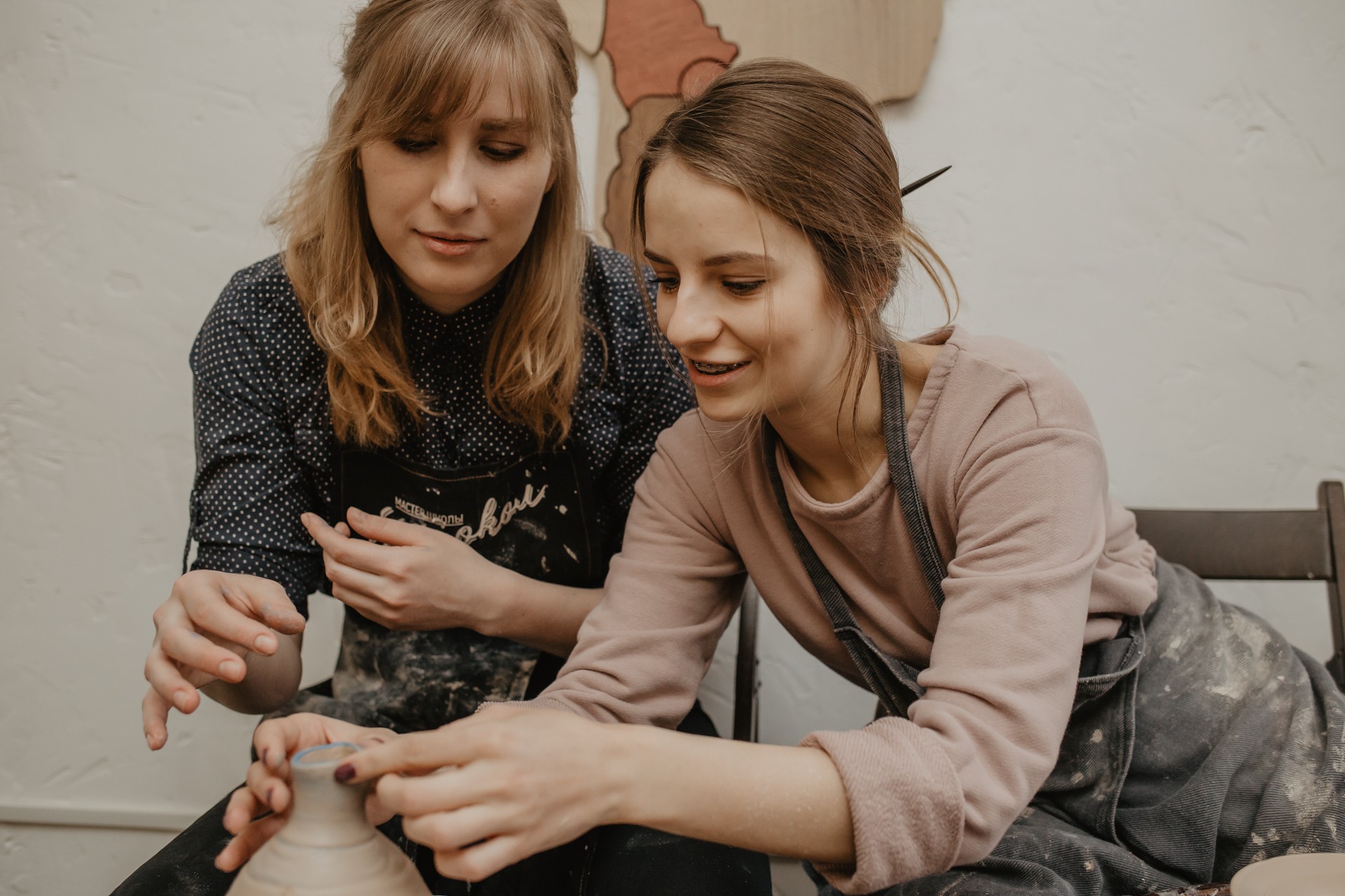 для детейНа мастер-классе вы сможете создать собственный шедевр и не переживайте, если вы ни разу ранее не держали в руках глину – большинство наших гостей знакомятся с гончарным кругом у нас уже на первом занятии создают отличные по качеству изделия.