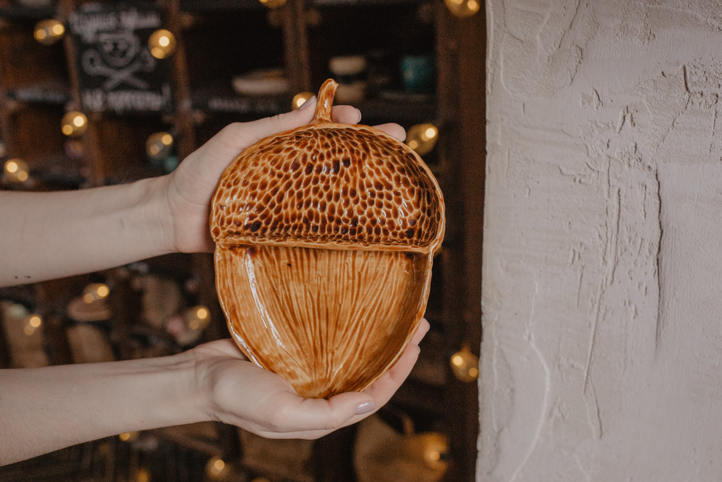 Помимо съестных продуктов вы можете положить в желудь заколки, украшения и любые другие мелочи. Главное - мисочка достаточно функциональна, а сама форма и цвет желудя будут создавать дома уютную атмосферу.