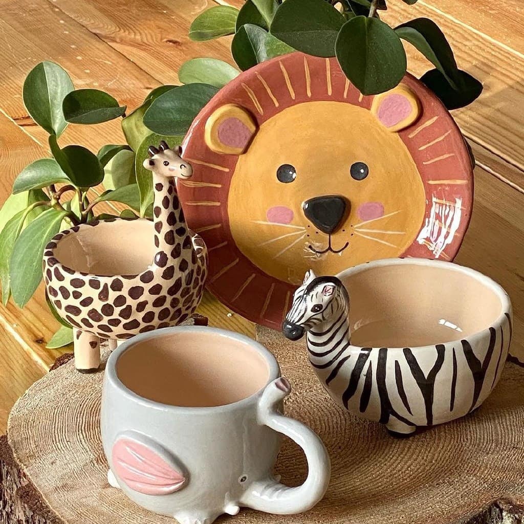 Ребят ждёт 4 классных занятия: в технике ручной лепки они слепят тарелочку со львом, а за гончарным кругом выкрутят кружку ленивца, стаканчик жираф, мисочку слоненка, раскрасят каждое изделие ангобами 💫